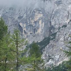 Early start but a few stops leads to a late start going up. Very steep up through the forest. Very windy and skies pretty ominous. Make it to open air museum. Head up then down into Italy quickly asMeer informatie