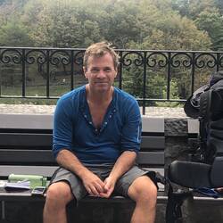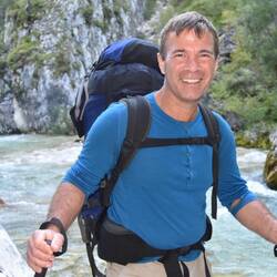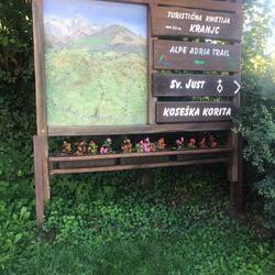 Another blue sky day though quite chilly. Walk up past interesting sculptures and through small towns. Big up to pass but fairly gradual. Long down with a swim in the Soca river awaiting us. Last bitMeer informatie