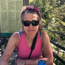 Beautiful morning amongst the towering mountains. A bit late for breakfast and get dregs. Cool morning as head up through the woods. Hit the optional detour to vista point which we take (leave packsMeer informatie