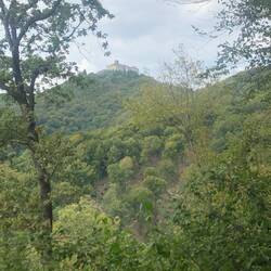 Early start after our breakfast in our own hostel. Morning is clear and a bit chilly. Nice walking through undulating forest paths. Seems a bit more fall-ish. Long down followed by long up toMeer informatie
