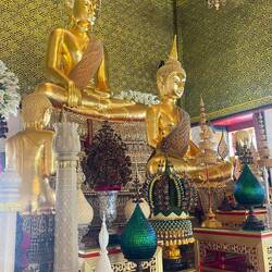 Our last day in Bangkok. Stop first at Wat I - home of a very large standing Buddha. Able to climb up almost to the top for a nice view. Walk to the river and board the hop on hop off ferry and travel Czytaj więcej
