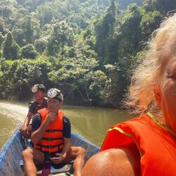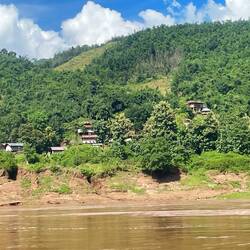 Earlier departure and more crowded bought. Yet sunny day as we continue winding our way downstream. Very isolated villages along the way though seem to be building roads all along the river. ArriveLeer más