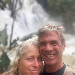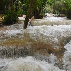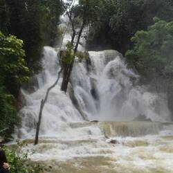 In honor of our 34 years of marriage, ride 34 miles (RT) to Kuang Si waterfalls. Scenic ride with some very rough sections (e.g, water filled potholes). Explore very full waterfalls with many otherLeer más