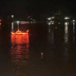Oddly, the skies darken after we wake up. And then the skies open. Crazy storm that lasts almost an hour and delays our departure to the boat dock. Finally able to go; get our tickets, load our bikesLeer más