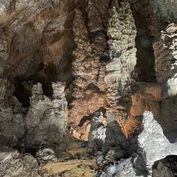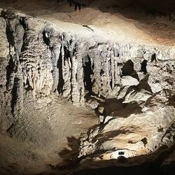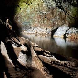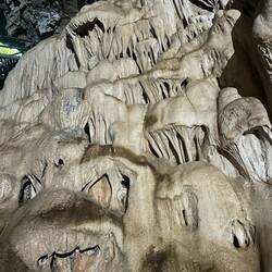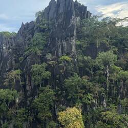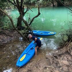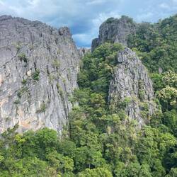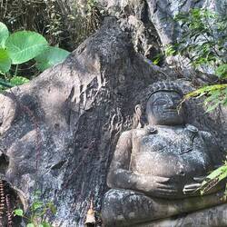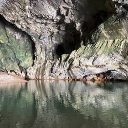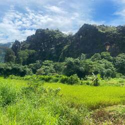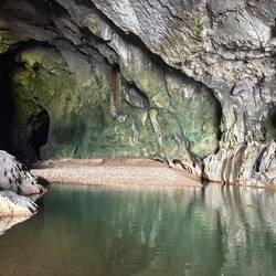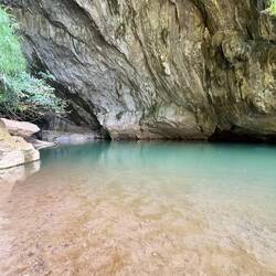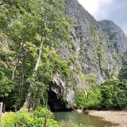 After another nice breakfast, left the resort - retracing our route to the north. Stopped at Tham Nam Non cave, which to our surprise was full of water. Using inner tubes we floated up into the cave.Leer más