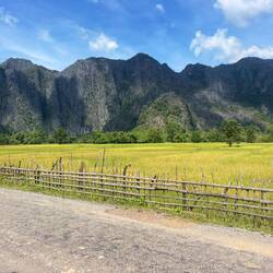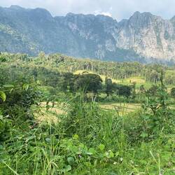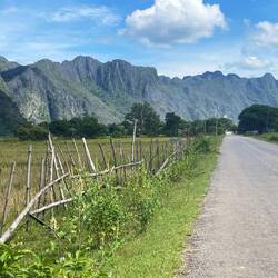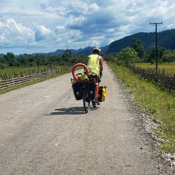 Early morning departure to board a minivan for Vien Vang. Horrible road conditions confirm that we made the right decision not to ride. And then in slopes up and the road becomes almost nonexistent- aLeer más