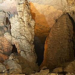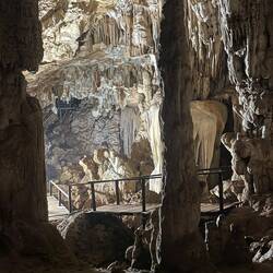 As the bungalow is very dark, I manage to sleep in. Late. Finally get up and go have breakfast before it’s too late. Short ride to Kong Lor Cave, a 5km long cave with a river through it. Take aLeer más