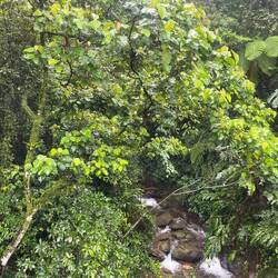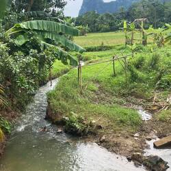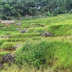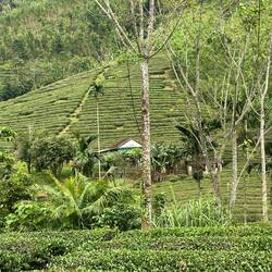 Very late start due to bike repair needs. Set off on rural roads through green hills. Terraced tea plantations dominate. A few hills and some wind slow us down a bit. Make it to “eco- resort” nextLeer más