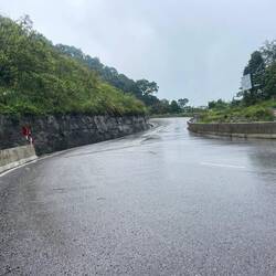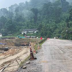 Cloudy morning as we prepare to climb the last bit before crossing the border into Vietnam. Load up with caffeine and sugar and head out. The road seems quieter but still a bit rough. Rain beginsLeer más