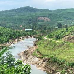 Another cool and rainy morning. Longer day in store and unfortunately almost totally on the busy Ho Chi Minh road. The horns and treacherous drivers were relentless. Rain did stop and we did make sureLeer más