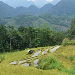 After an amazing cheese omelette, set off on a short but hilly ride into Pu Luong reserve. Again, we dealt with hills and muddy roads to avoid the traffic. After a stop for coffee (have yet to figureLeer más