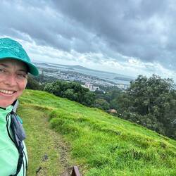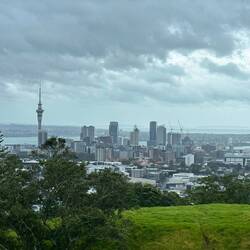 I went on a final walk up to Mount Eden - with a closed top, and, me trying to take a shortcut, all of a sudden slipping and kneeling in the mud. But despite the weather, there were some nice views over the city.