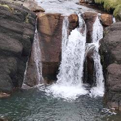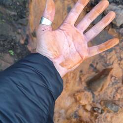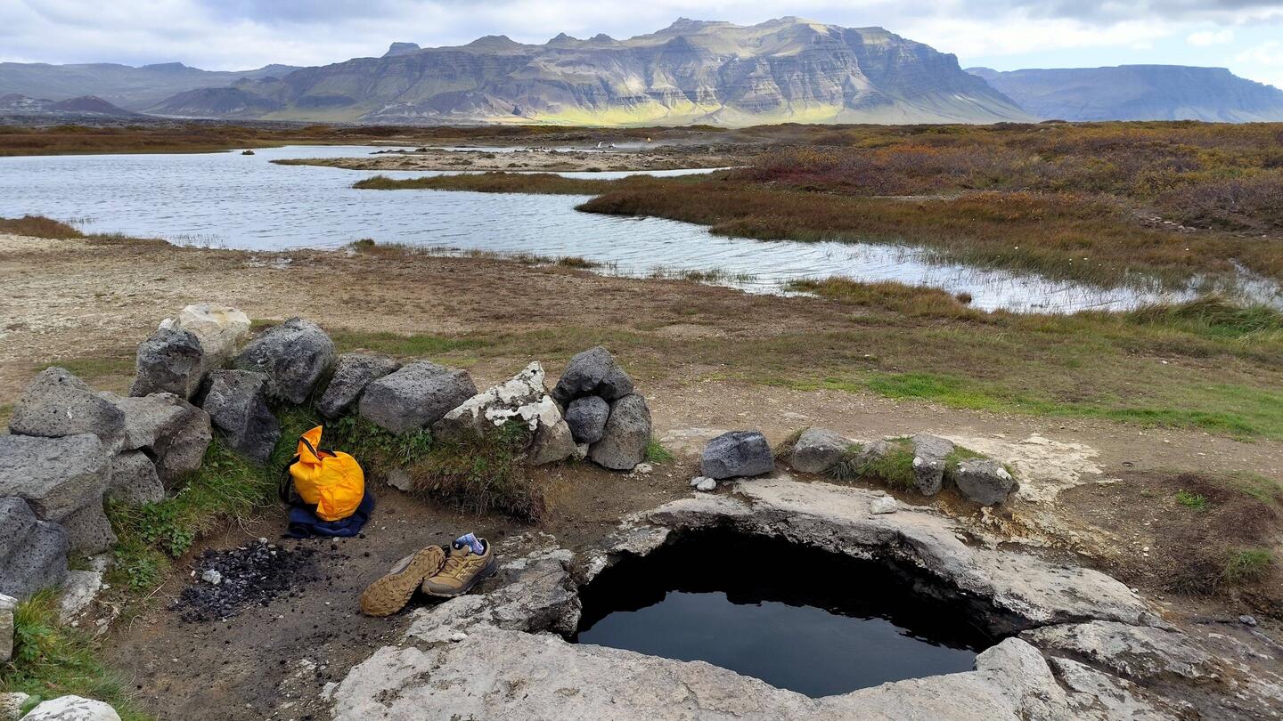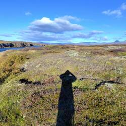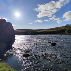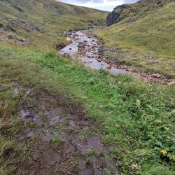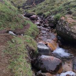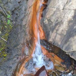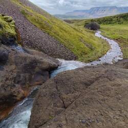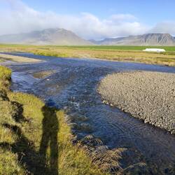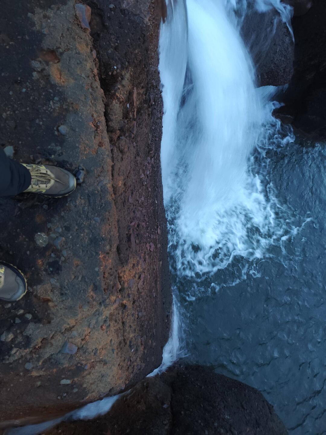 Mein rechter Schuh und die Socke sind Klatsch nass, weil ich beim Queren vom Bach reingeplanscht bin...