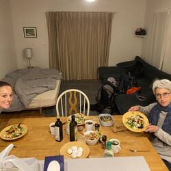 Mitten im Wald angekommen, bringen wir unser ganzes Baggage ins Haus (wir haben die gesamte Unterkunft für uns 🎊). Wir machen unser Znacht parat und sind froh, endlich am Ziel angekommen zu sein. 🙏💪