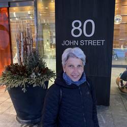 Müggi fährt die Gruppe 🚘 in die Stadt. Dort angekommen, laufen wir direkt zum CN Tower. Wir haben Glück, denn die Sonne ☀️ beginnt zu scheinen. Die Bewölkung nimmt ab.