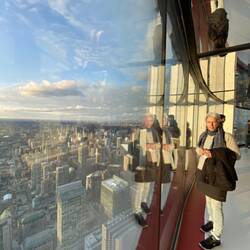Beim Canadian National Tower angekommen, fahren wir mit dem Lift 346m nach oben. Von dort haben wir eine wunderbare Sicht über die riesige Stadt. 🌃 Toronto ist die grösste Stadt Kanadas und hat eine Bevölkerung von etwa 3 Millionen.
