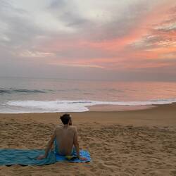 Nach der Kaffeepause machen wir es uns am nahe gelegenen Strand gemütlich. Wir lesen und geniessen die Sonne. Doch plötzlich beginnt es aus dem Nichts zu regnen. ☔🌧️ Im Verlaufe des Nachmittags wechselt das Wetter immer wieder von ☀️-schein zu 🌧️. Zunächst ist es aber ok, denn der Niederschlag ist immer nur von kurzer Dauer. Wir baden auch im angenehm warmen Wasser des Indischen Ozeans.