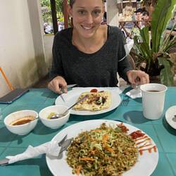 Wir fahren zur Unterkunft zurück und bestellen unser Abendessen. Heute dinieren wir einmal hier - Sri Lanka Reis mit Curry.