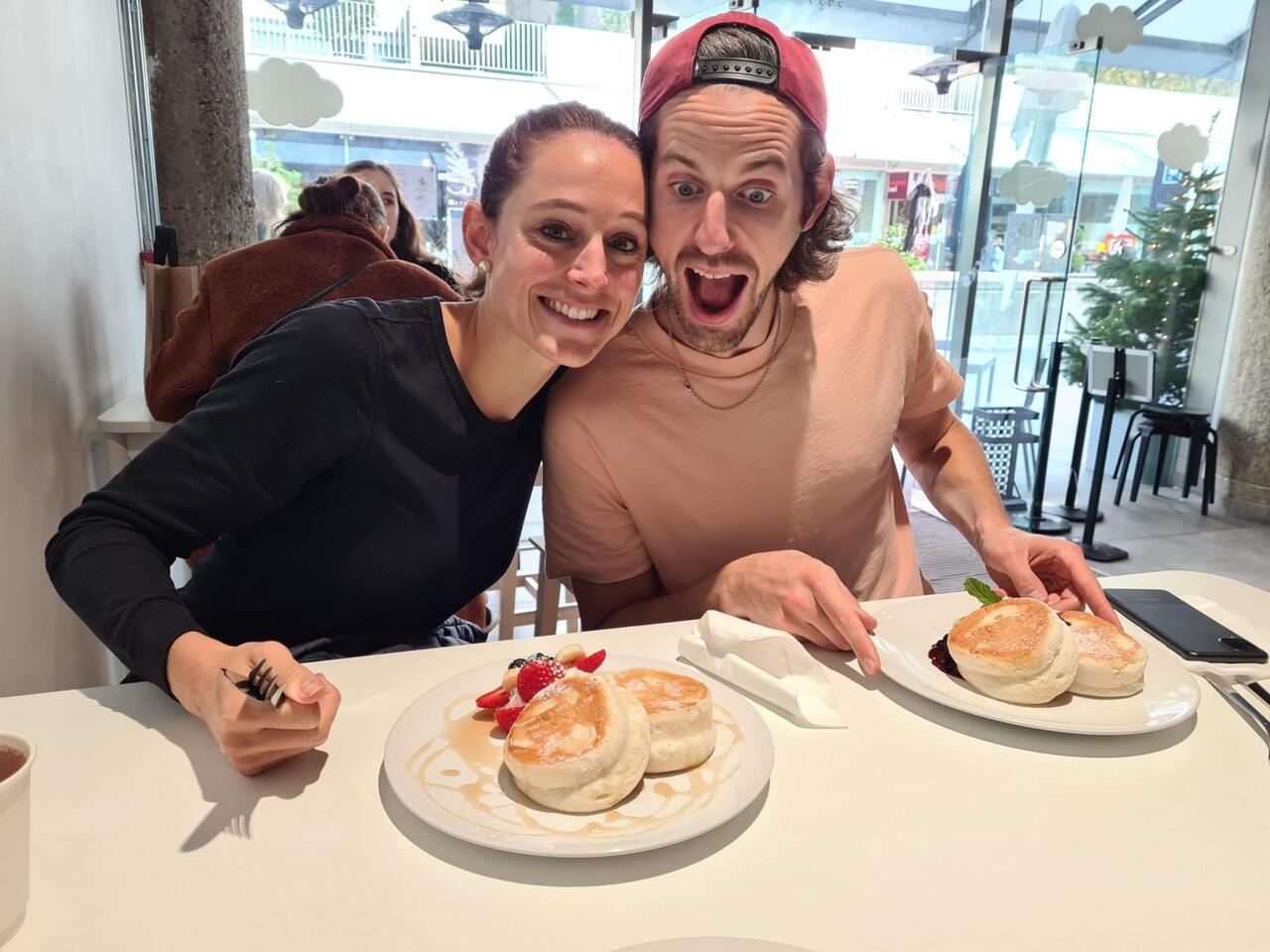 Am Nachmittag laufen wir mit Ben fast 4h durch London. Zuerst besuchen wir das fancy Restaurant Fuwa Fuwa und essen dort richtig leckere japanische fluffy Pancakes.