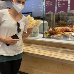 Unterwegs holen wir uns Kaffee und ein koreanisches Dessert für heute Abend (Buns in verschiedenen Geschmacksrichtungen).