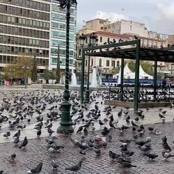 Es geht mit dem Bus zurück. Wir fahren vom Flughafen aus mit der Nr. X95 ins Stadtzentrum von Athen. Dort suchen wir den von Martina herausgesuchten Friseur, George's Hairsalon. Wir finden ihn, dank Müggis Navigation, auf Anhieb. Glücklicherweise hat er gerade Zeit für uns. Zuerst schneidet Martina ihre Haare. Nachdem Müggi das schöne Resultat sieht, hält auch er seinen Kopf hin. 😅 Er nimmt sich Zeit für uns. Wir haben gute Gespräche. Nach 1h20 verlassen wir seinen Salon, beide erleichtert, wieder etwas gepflegter auszusehen. 🙈