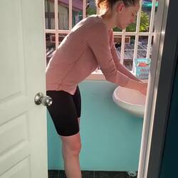 Martina steht heute früh auf und macht Frühsport (während Müggi noch pfust😴), um sich doch noch etwas bewegt zu haben, bevor es auf den langen Flug geht. 🤭 Danach bereitet sie das Frühstück zu.