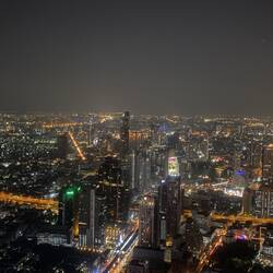 Oben angekommen, staunen wir nicht schlecht. Der Ausblick über die 15-Millionen-Metropole ist atemberaubend. Wir wussten bereits, dass diese Stadt riesig ist. Doch vom Dach des Hotels aus wird uns nochmals bewusster, dass die Hauptstadt Thailands immens gross ist - der pure Wahnsinn.