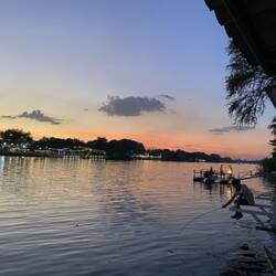 Jänu, wir erfreuen uns an der wunderbaren Unterkunft (sehr einfach gehalten, aber charmant). Sie liegt direkt „auf“ dem Fluss Kwai.