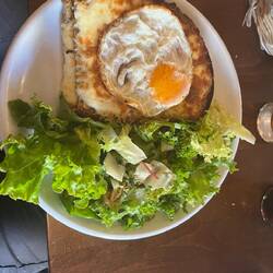 Hunger, also Abendessen auf Empfehlung aus dem Hotel. Das liefert dann den Hammer: getoastete Weißbrotscheiben, mit Käse überbacken und Kochschinken innen drin. Das gibt es auch als Croque Madam, dann mit einem Spiegelei oben drauf. Das muss dann die französische Variante eines Strammen Max sein.Read more