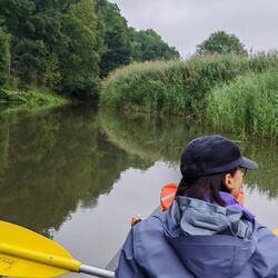Heute begleitete uns Monja mit einem Kajak uns auf dem Weg nach Dollnstein. Wir paddelten 13 km und fuhren ein Staustufe hinunter.