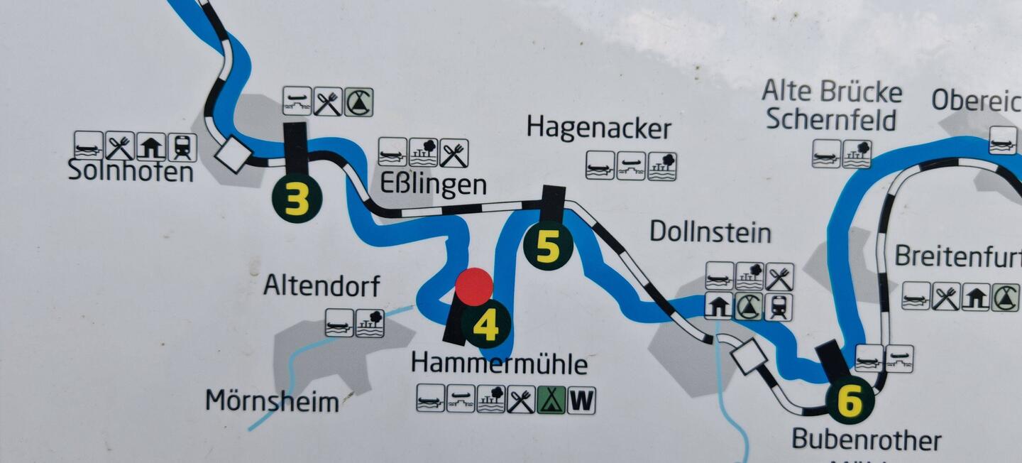 Mit dem Kanu paddelten wir nach Pappenheim. Hier müssten wir an der ersten Staustufe das Kanu umsetzen. Weiter ging die Tour nach Solnhofen zu unserem Campingplatz, welche wir nach 4 Std. erreichten.Read more