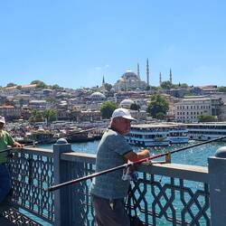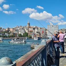 Wonderful lunch..on Galata Bridge across the Golden Horn, on the lower level in one of the little restaurants. A spicy, creamy dip, an aubergine dip, beer, tea and a water pipe. Views over theRead more