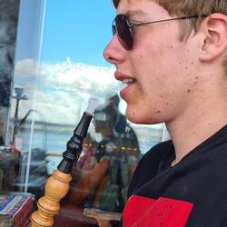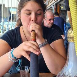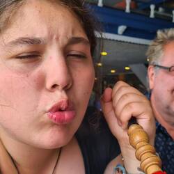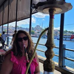 Back to the bridge with Eva - not a fan of the waterpipe! Then a long walk to Galata Tower on the other side of the Golden Horn....