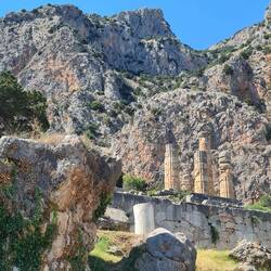 Delphi, major site of classic pilgrimage. A long processional way, steep uphill, votive offerings from cities and towns asking for patronage from the gods, located in the midst of natural splendour.Read more