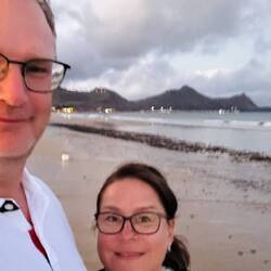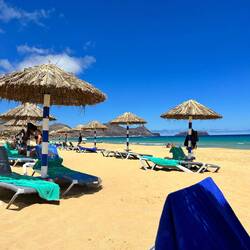 Heute ging es früh zum Hafen und von dort mit der Fähre nach Porto Santo. Wir haben ein schönes Hotel mit einem super schönen Sandstrand 🏖️🌊🏝️. Nun heißt es erstmal relaxen.