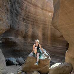 Wieczorem sprawdzamy ponownie - jednak nie, jest jak byk (albo tytułowa krowa) - miejsce właściwe, droga właściwa, parking właściwy. I jeden blog, po przetłumaczeniu którego okazuje się, że trzeba jednak było iść w górę chaszczy, za którymi czekała zjawiskowa nagroda. Więc powtórka z rozgrywki - autostrada, serpentyny, parking, zejście przez barierkę - i za ścieżką w prawo, przez chaszcze, do przejścia pod zaporą. I jest. W murze z kamienia wysokim na 30+m niewielki łuk pod którym można przejść. I przez ten właśnie luk otwiera się przed nami Wąwóz Barranco de la vaca - ceglano-czerwone skały, podziurawione jaskiniami jak ser szwajcarski, zjawiskowo piękny. Zdjęcia trzeba co prawda synchronizować z innymi, którym udało się pokonać informacyjną próżnię, ale zdecydowanie było warto!Read more