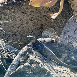 Ale nie dużo tej fauny. Z wyjątkiem papużek, które drą się jak opętane, a poza tym skutecznie chowają w koronach drzew, synogarlic które są tak bezczelne, że prawie wchodzą na człowieka, zwłaszcza leżącego pod palmą, jednego ptaka drapieżnego dyżurnie krążącego nad skałami, to jeszcze są jaszczurki.