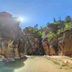 Celem dzisiejszego dnia jest dotarcie do parku Zion, ale ponieważ nigdzie się nam nie spieszy, wybieramy przejazd boczną, widokową drogą. I to jak widokową! Oczywiście pustynia i klify, tym razem wielokolorowe, ale także zjazd nad samą rzekę Kolorado i nawet zanurzenie w niej stóp przez część ekipy (tą bardziej wyczynową). Woda wypływa z samego dna pod tamą, jest więc lodowata (4-10°C, dziś bardziej 4...), ale i tak cieszy.