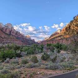 Pustynia i klify nadal nas cieszą, a krajobraz, wbrew pozorom, wcale nie nuży. Skały po obu stronach drogi do Zion różnią się diametralnie. Po prawej klify vermillion (cynobrowe), surowe, skaliste, poszarpane, i jak sama nazwa wskazuje, pomarańczowo-czerwone. Po lewej, białe, łagodne pagórki, porośnięte kępami trawy i krzewinkami. Najwyraźniej kolor czerwony charakteryzuje prawdziwych twardzieli, przynajmniej wśród skał.