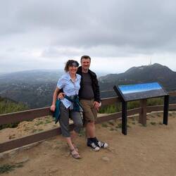 W założeniu miał to być dzień relaksu, najpierw rowerem (elektrycznym, w końcu relaks) na wzgórza Hollywood, oglądać panoramę i miejsca wszelkich morderstw serialowych, a potem przenieść się z relaksem na słynną plażę Santa Monica, gdzie w promieniach słońca mieliśmy rozkoszować się Malibu i Tequila Sunrise. Ale jak to bywa z planami i losem który się z nich śmieje. Dogonił nas w końcu (w zasadzie to już wczoraj) deszcz przed którym uciekaliśmy od Wielkiego Kanionu Zachodniego, a Los Angeles chyba obraziło się za pierwszy komentarz, bo całe w chmurach i szarej mgle.