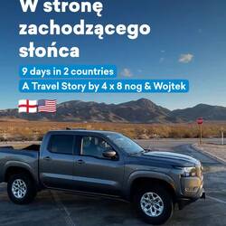 Żegnamy Przystanek Alaska i góry Jacinto, i znowu po płaskiej, szerokiej, i szarej autostradzie przemieszczamy się w kierunku pustyni. AI podsuwa tutaj obrazek wielbłąda 🐪 i 🐫 ale tych akurat nie spotkaliśmy.