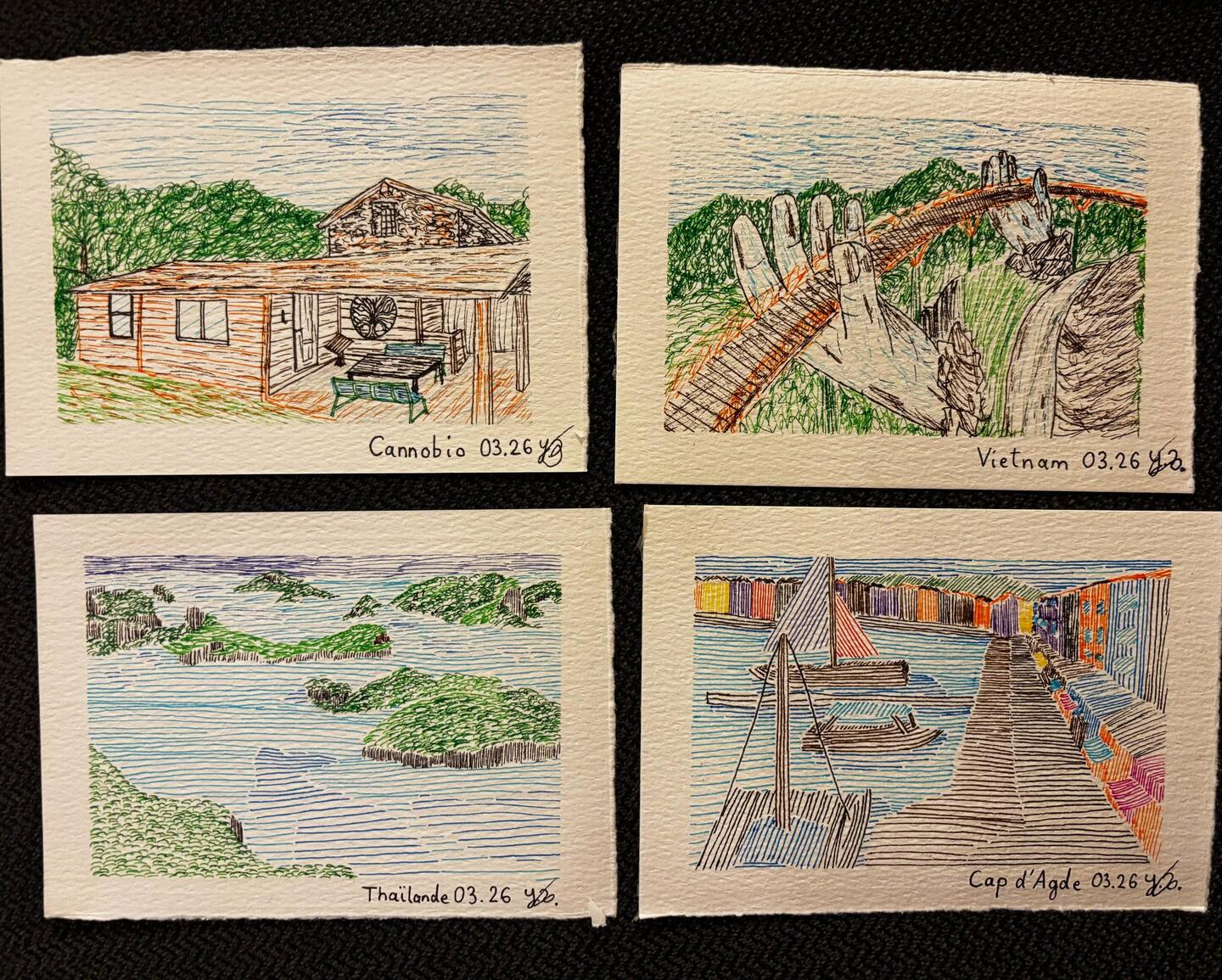 Je compte prendre du temps pour dessiner les paysages aussi, alors je m’entraîne un peu avant 🖊️