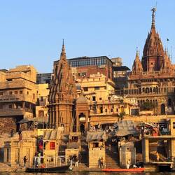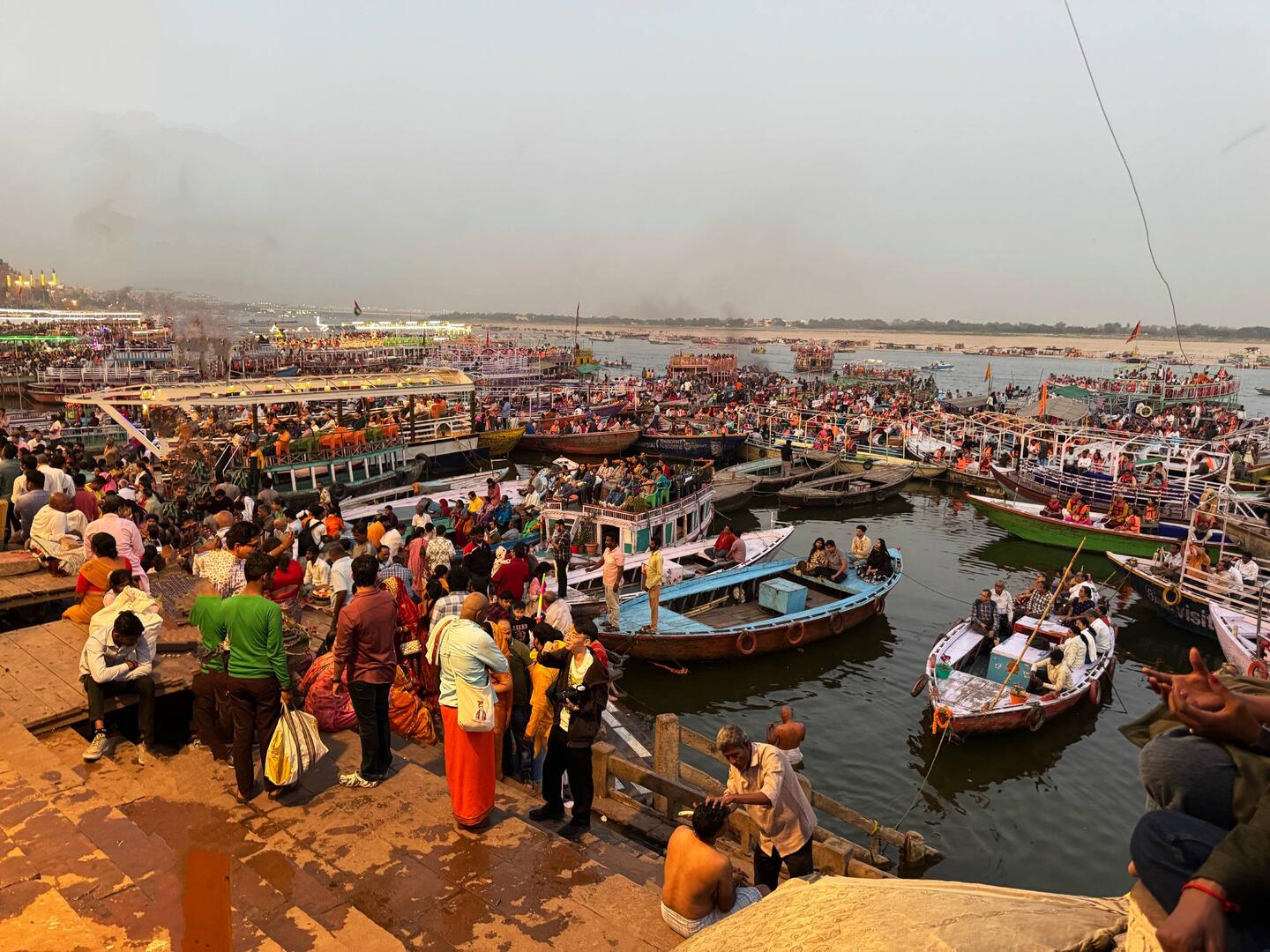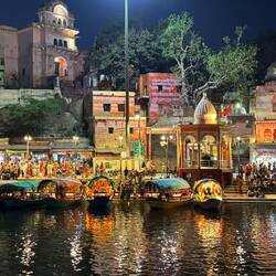Nach meiner Ankunft im Hotel machte ich mich auf den Weg zur Ganga Aarti, einer spirituellen Abendzeremonie, die täglich am DashashwamedhLue lisää