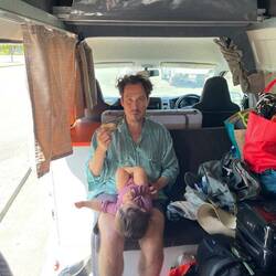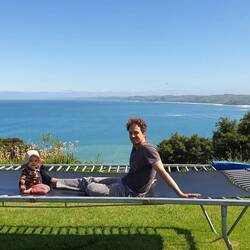 Raglan selbst ist klein, aber voller Cafés, Surfshops, Secondhand-, und Plattenläden. Chiara geht morgens zum Yoga und kommt natürlich super ausgeglichen zurück, während ich, verpennt mit einem Kaffee in der Hand, versuche, Josy davon abzuhalten, sich irgendwelche Abhänge hinunter zu stürzen oder Steine zu essen (sie hat eine Vorliebe für Steine). Ich gehe abends surfen oder trinke bei Vollmond ein Bier im Campingstuhl. Abends koche ich (Chiara mag nie, räumt aber leidenschaftlich und sorgt für Ordnung) und seitdem ich ein Baby habe freue ich mich danach auch aufs Spülen (und in Ruhe Podcast hören).
