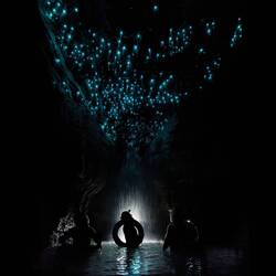 Nach einigen schlumpfigen Tagen fahren wir weiter nach Süden zu den Waitomo Höhlen. Das sind hunderte Kalksteinhöhlen und Heimat von Arachnocampa luminosa, eine besondere Langhornmückenart. Und genau wegen dieser möchten wir unbedingt hier hin. Der Name verrät ihre besondere Fähigkeit schon: Sie ist biolumineszent, leuchtet bläulich im Dunkeln und erhellt in Kolonien die abgelgensten Winkeln der Höhlen mit surreal funkelnden Sternenhimmeln.