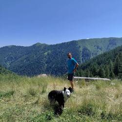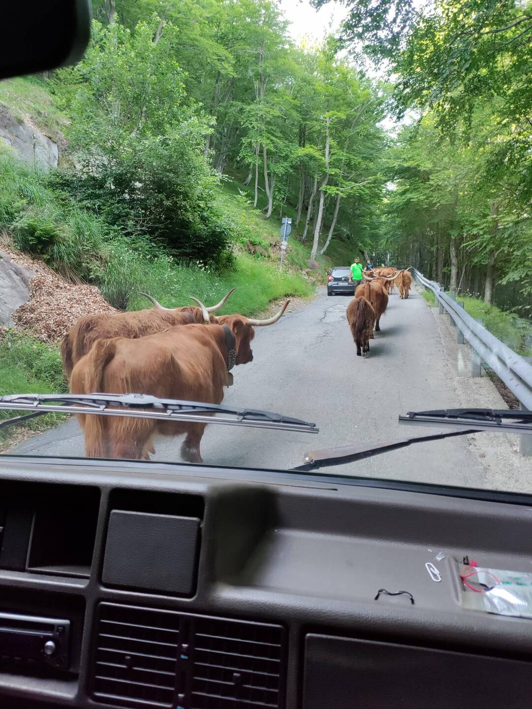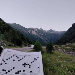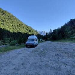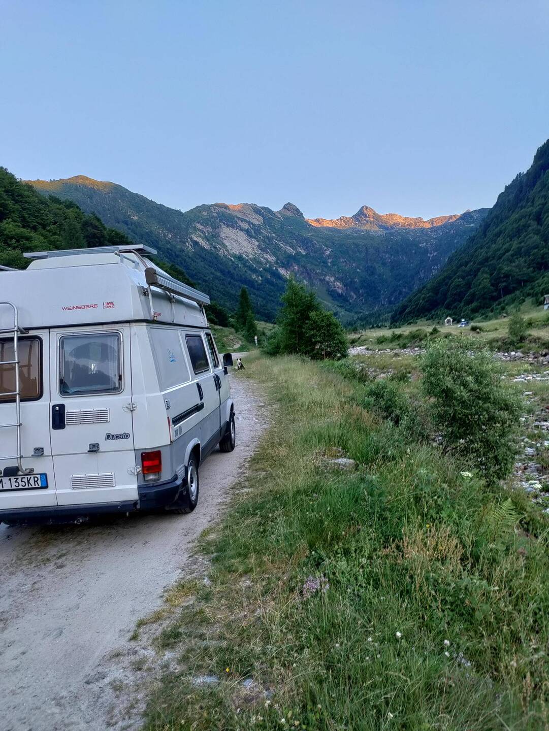 Ci fermiamo in val loana in un bellissimo spiazzo fra prato e fiume, vicino a noi solo un altro camper con un gatto che segue ovunque i padroni.