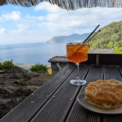 Pranzo nella veranda di la scuna spritz e focaccia