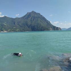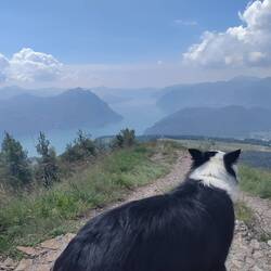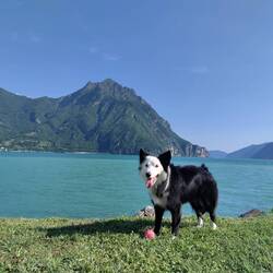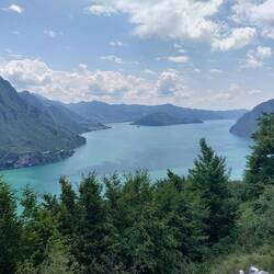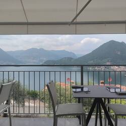 Bel ristorante Vista lago dopo che per fortuna uno l'abbiamo scartato per obbligo museruola