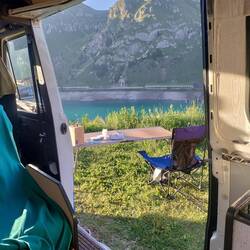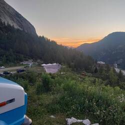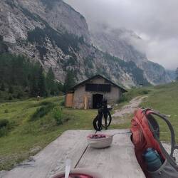 Dopo una faticosa salita con 15 18% di pendenza arriviamo in questo splendido spot dove riusciamo anche a cenare fuori prima dell'arrivo del temporale