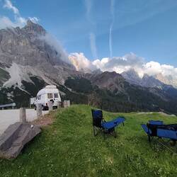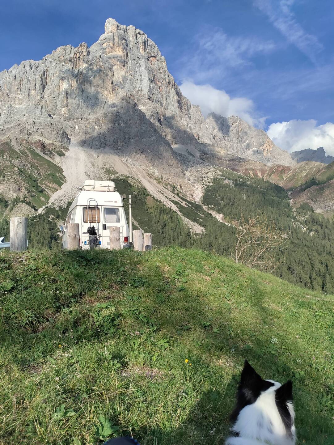 Tornati dall'escursione spostiamo il van di pochi metri per arrivare in questa bella piazzola erbosa.